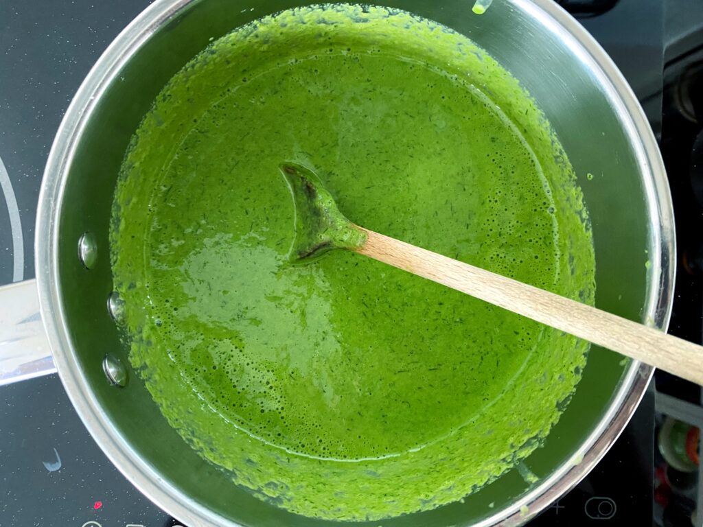 - Kook in een sauspan op een laag vuur gedurende een 5-tal minuten terwijl je regelmatig roert. Tot je saus warm is en ingedikt is.