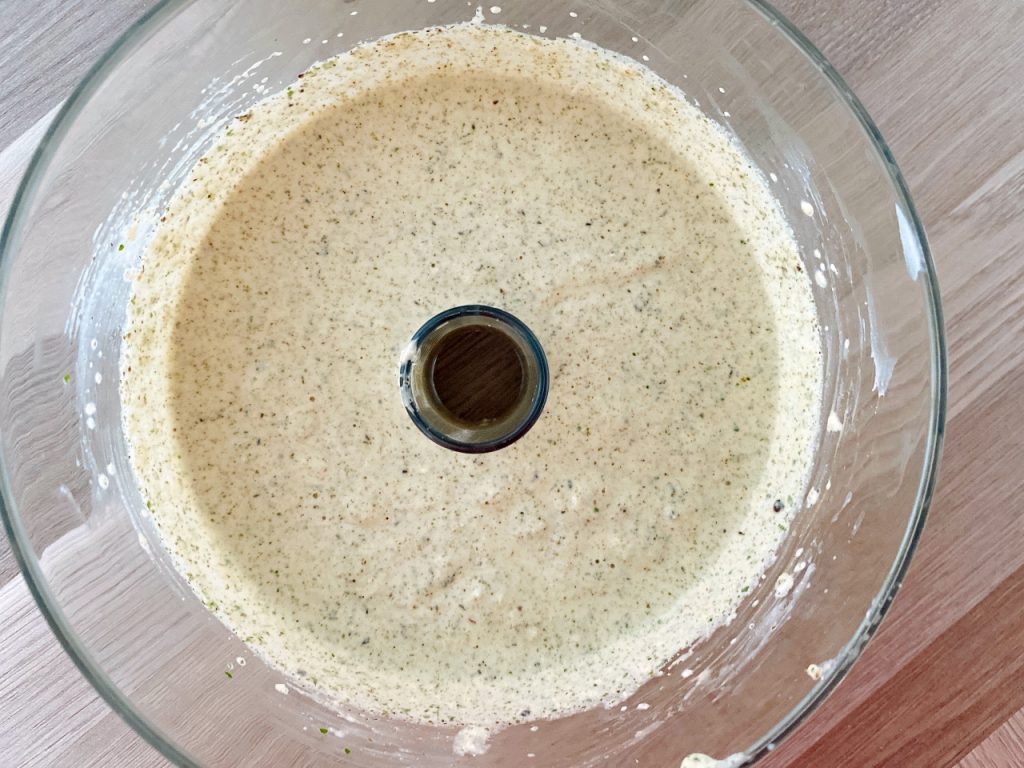 - Voeg alle ingrediënten samen met 1/2 cup water (= 125 milliliter) toe aan een mixer, blender of keukenmachine en mix fijn. Blijf mixen tot je een gladde, romige saus bekomt.